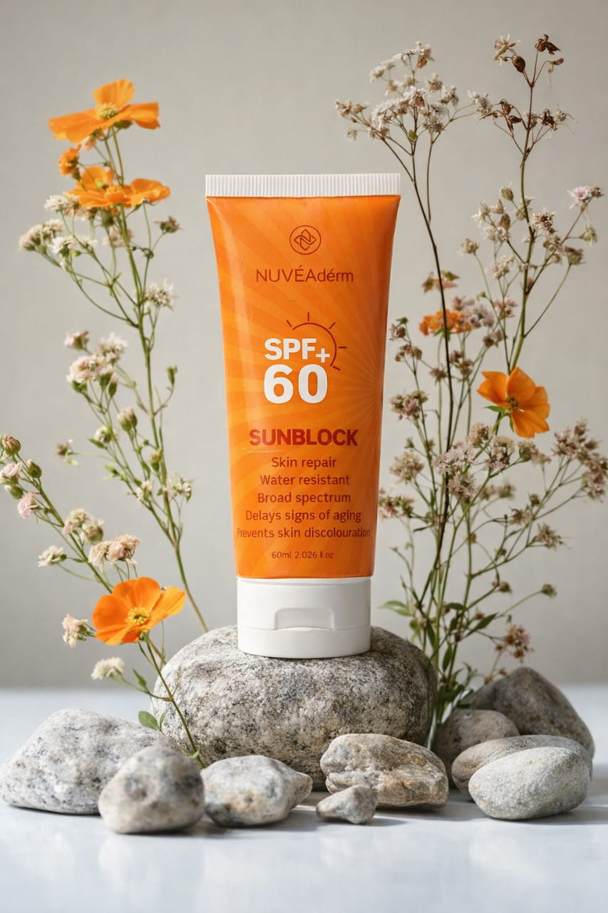 Protect your skin with confidence using NUVÉAdérm SPF 60+ Sunblock, a high-protection formula designed for modern, everyday sun exposure. Crafted to shield skin from harmful UVA and UVB rays, this lightweight yet powerful sunblock helps maintain an even-looking complexion while supporting skin repair and resilience.